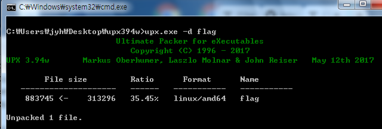 아직까지 감은 안오지만 일단 upx.exe를 이용해서 언패킹해보았다.
