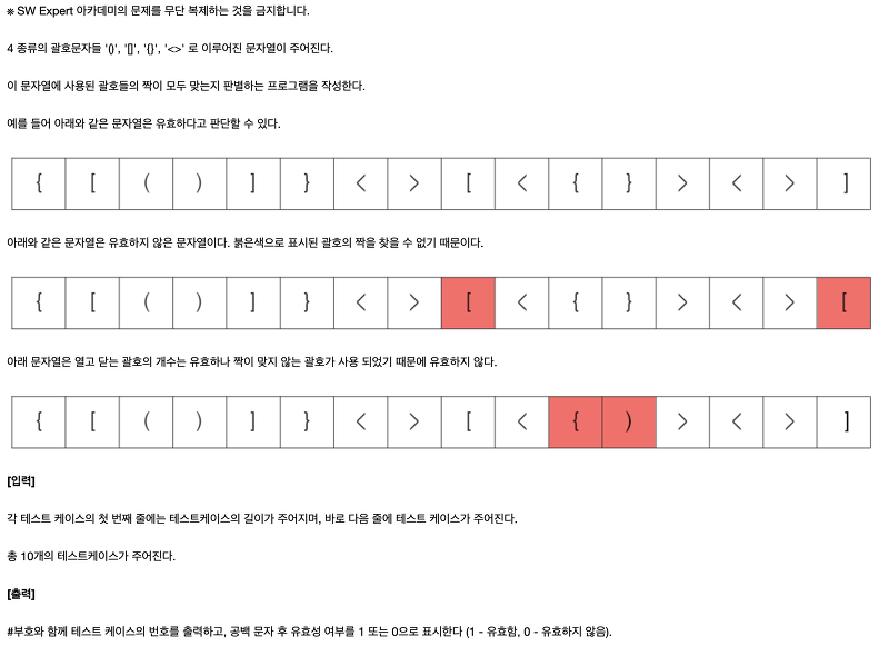 1218. 괄호 짝짓기 풀이알고리즘/SW Expert Academy 2020. 3. 4. 19:34