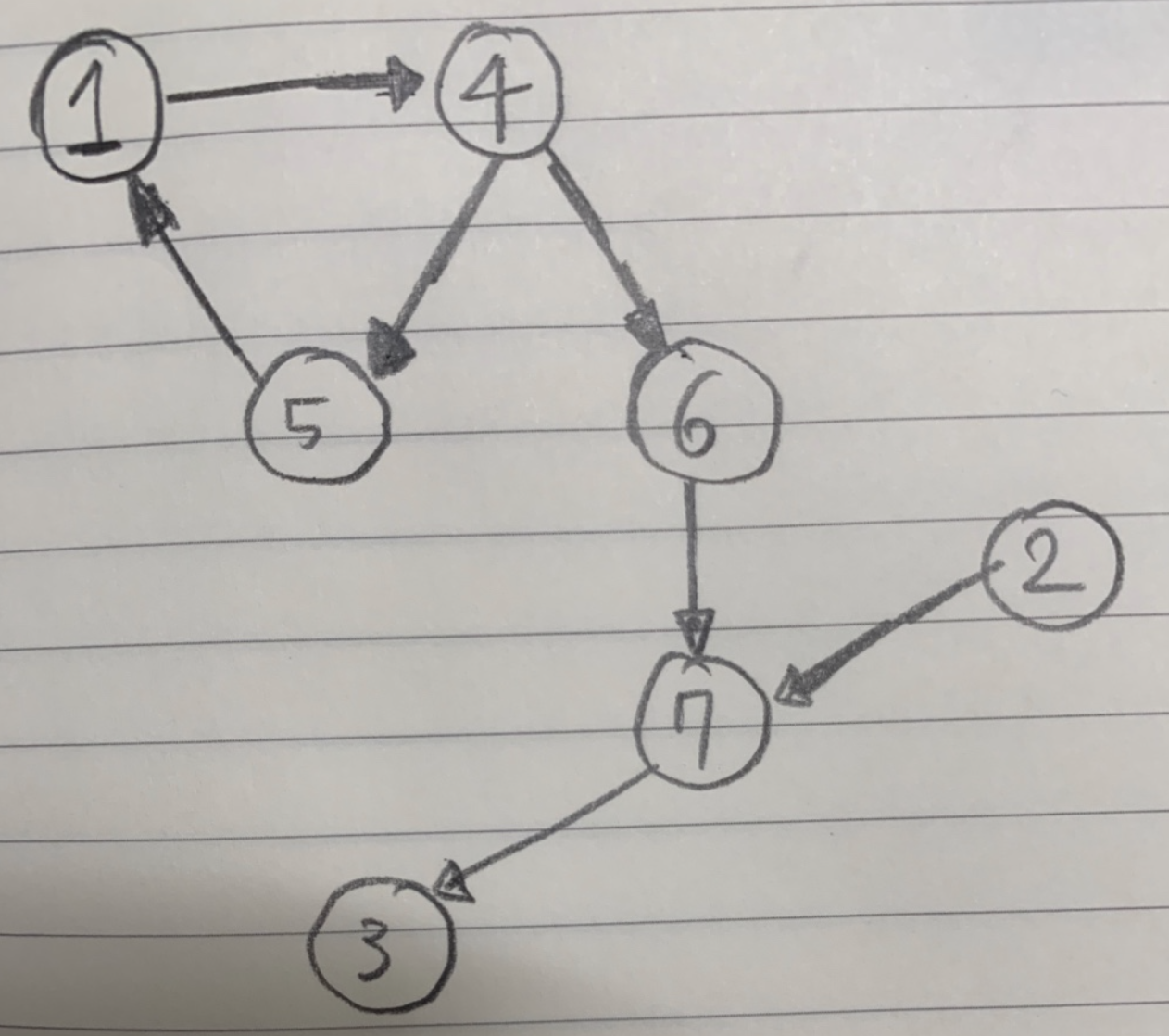 자기자신으로 돌아가는 경로가 존재하는 경우도 있다.(첫 번째 라인의 경우 1이 자기자신으로 돌아올 수 있는 경로가 존재)