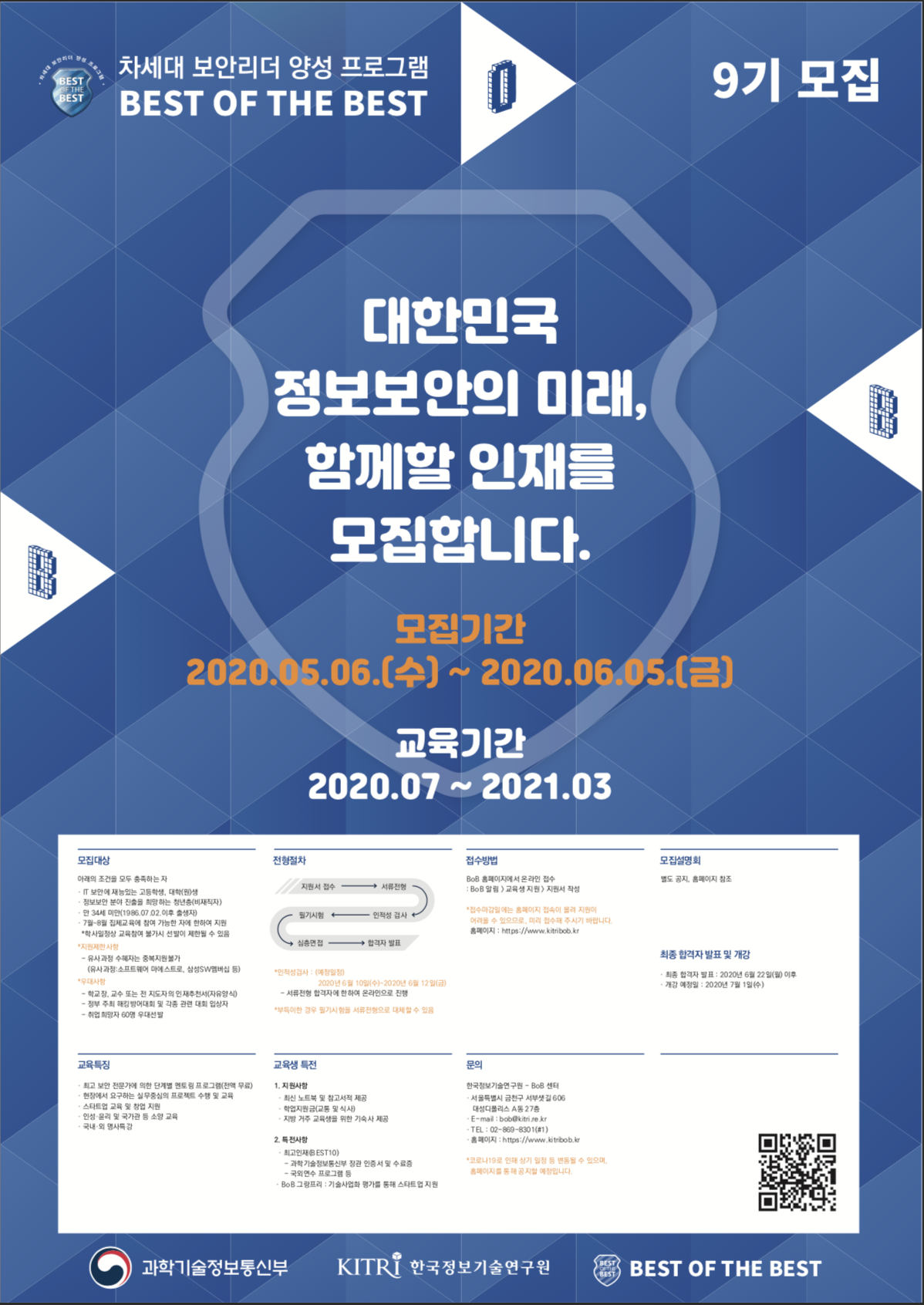 차세대 보안리더 양성 프로그램 Best of the Best 홈페이지에 방문하신 여러분들을 환영합니다.