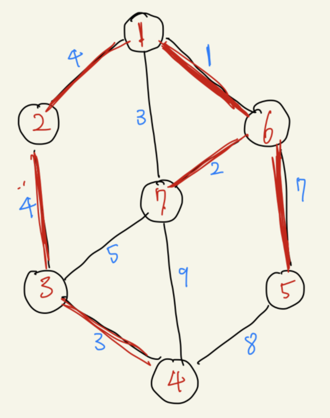 위에서 오해하지말라고 했던 것은 최소 스패닝 트리 완성 후, 부모노드를 체크하게 되면