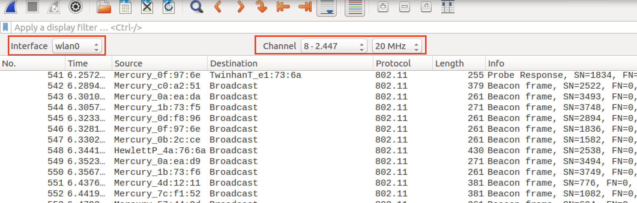 기존에 사용할때는 아래와같이 iwconfig 명령어를 이용해서 프레임을 캡쳐할 channel을 하나씩 옮겨가며 진행하였다..