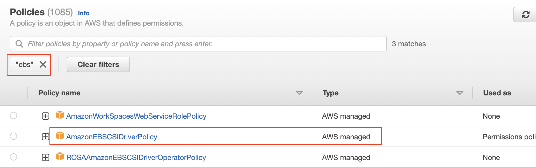 => Custom Policy가 아닌 AWS에서 제공하는 관리형 정책인 AmazonEBSCSIDriverPolicy 사용했다.