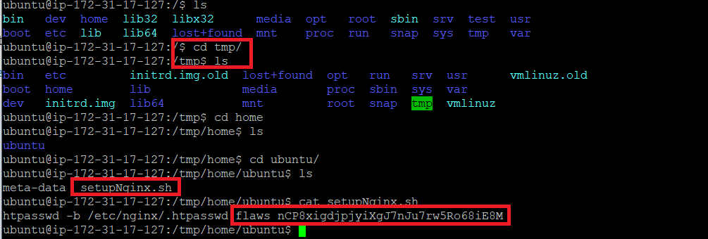 _____ _ ____ __ __ _____ | || | / || |__| |/ ___/ | __|| | | o || | | ( \_ | |_ | |___ | || | | |\__ | | _] | || _ || ` ' |/ \ | | | | || | | \ / \ | |__| |_____||__|__| \_/\_/ \___| flAWS - Level 4 Lesson learned People often leak AWS keys and then try to