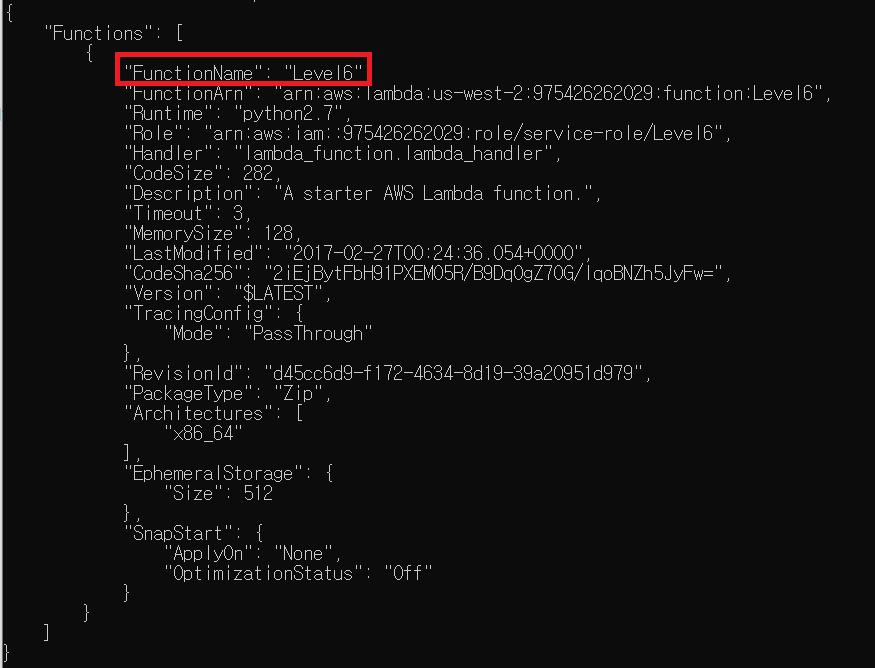 => python 2.7로 동작하는 Lambda 함수의 이름 Level6를 알 수 있었다.