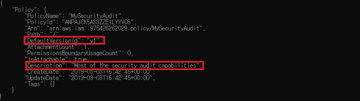 => 여기서는 딱히 도움될만한 정보는 없었고 policy version과 이름에서 알 수 있는 직관적인 Description이 작성되어있었다.