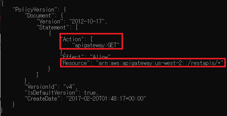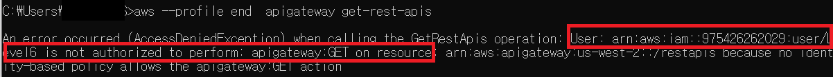 => 어찌되었던 우선 비교적 짧은 정책 list_apigateways 내용인 arn:aws:apigetway:us-west-2::/restapis/*"라는 resource에 대해 GET을 호출 할 수 있다는 점을 이용해보기로 했다.