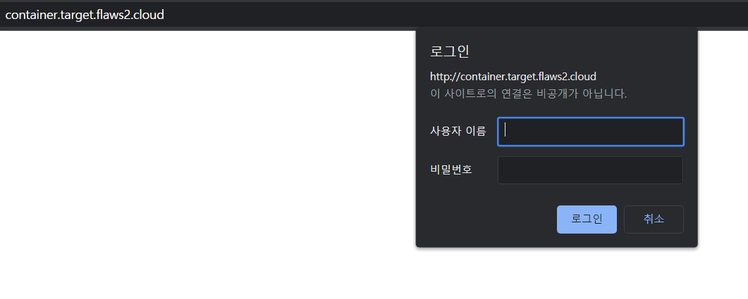 => 이번 문제는 ECR관련된 문제로 보여진다. 문제에서 제공된 링크에 접속 시, 계정정보를 물어본다. 딱봐도 계정정보를 알아내면 다음 Level로 가는 링크를 알려줄 것 같다. 문제에서 제공한 힌트는 ECR이름이 "level2"라는 것과 s3같이 open된 permission을 가진 AWS 리소스를 사용하라는 것 같다.