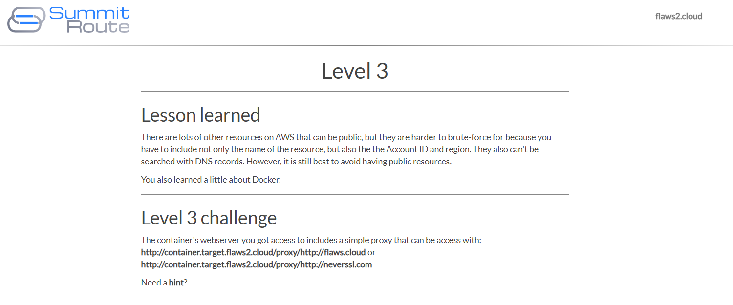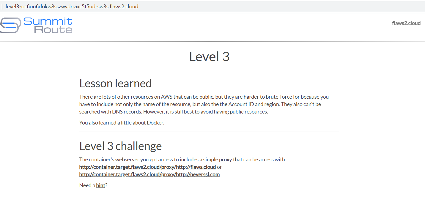 level3-oc6ou6dnkw8sszwvdrraxc5t5udrsw3s.flaws2.cloud