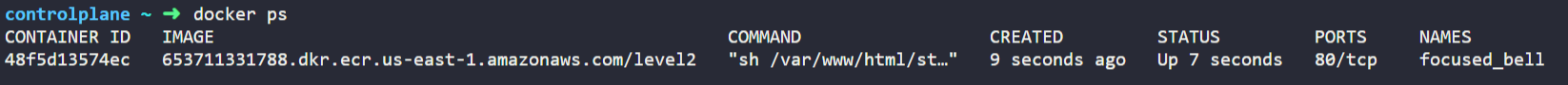 docker run 653711331788.dkr.ecr.us-east-1.amazonaws.com/level2 docker ps