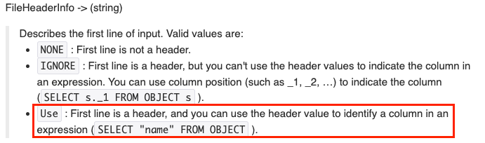 # FileHeaderInfo": "USE" 사용 시