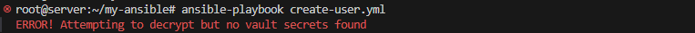ansible-playbook --vault-id @prompt create-user.yml* 에러발생