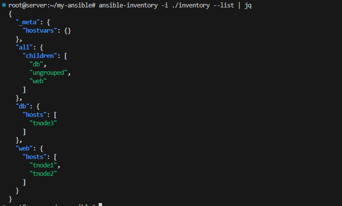 ansible-inventory -i ./inventory --list | jq ansible-inventory -i ./inventory --graph