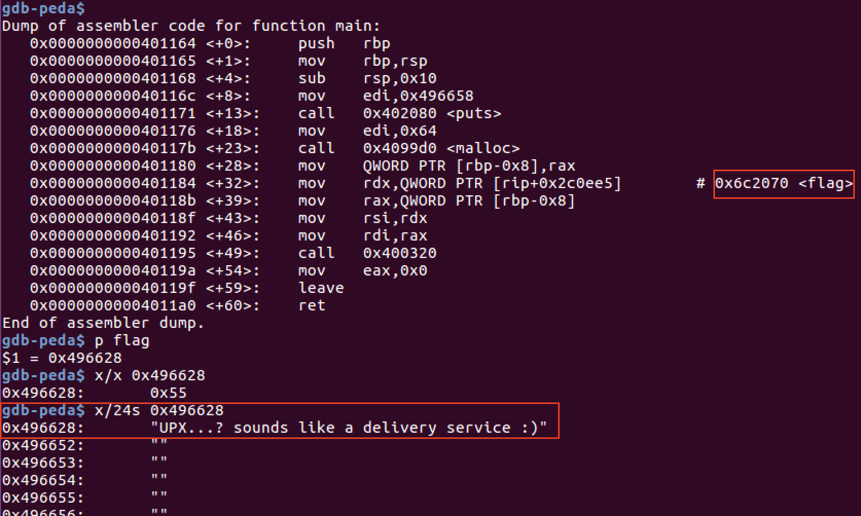 바이너리를 gdb로 디버깅해보았더니 바로 flag라는 녀석이 보였다.