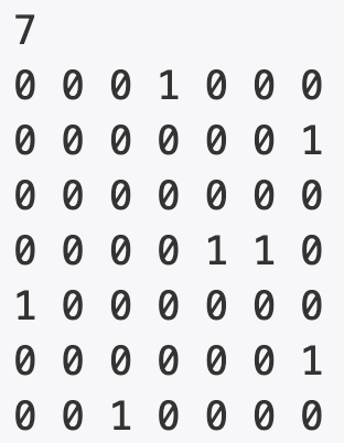 # i번째 줄의 j번째 숫자가 1인 경우에는 i에서 j로 가는 간선이 존재한다는 뜻이고, 0인 경우는 없다는 뜻이다.