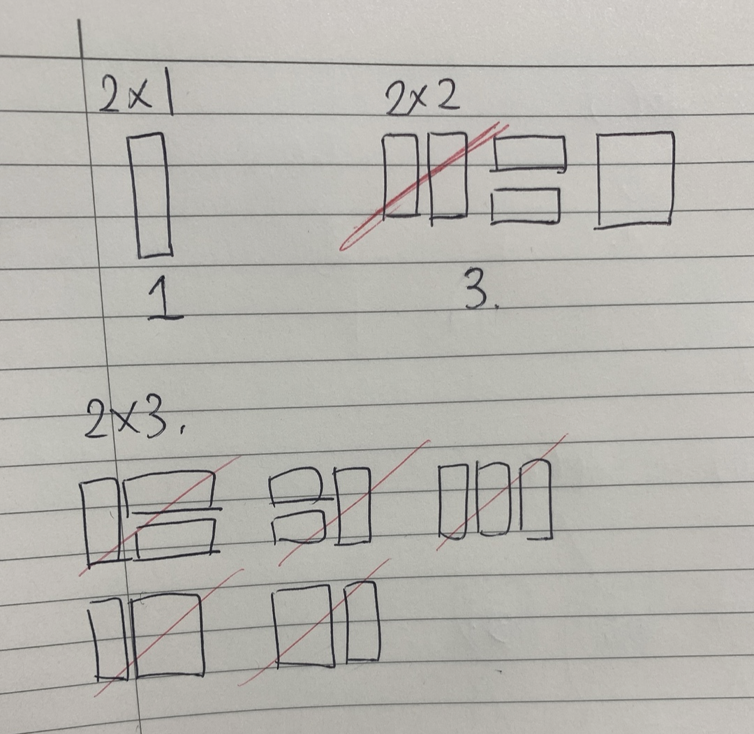 그렇기 때문에 2가지로 봐야한다. 2x3의 경우는 보다시피 2x1이나 2x2의 형태에 모두 포함되어 있기 때문에