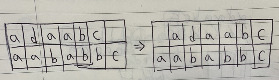 그러므로 위의 그림처럼 나머지 A문자열을 자리를 옮겨가며 B의 문자열과 차이를 비교하면 끝난다.