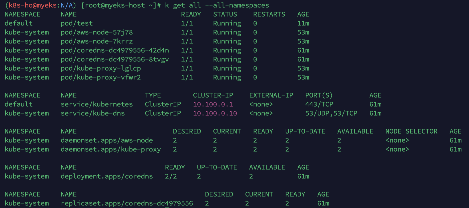 - 현재 kubernetes 구축 시, 확인되는 리소스 및 컴포넌트들이다.