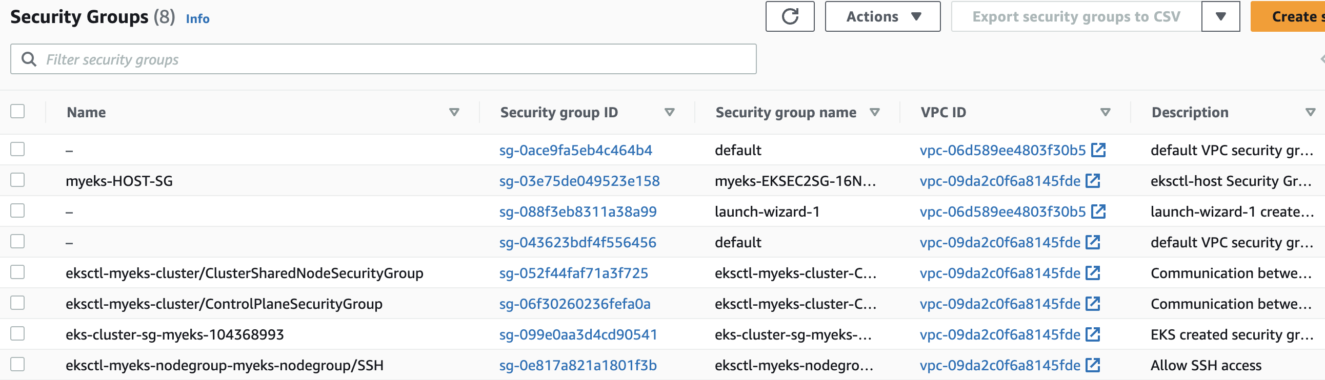 GROUP_ID=$(aws ec2 describe-security-groups | jq -r '.SecurityGroups[] | select(.GroupName | startswith("myeks")).GroupId')