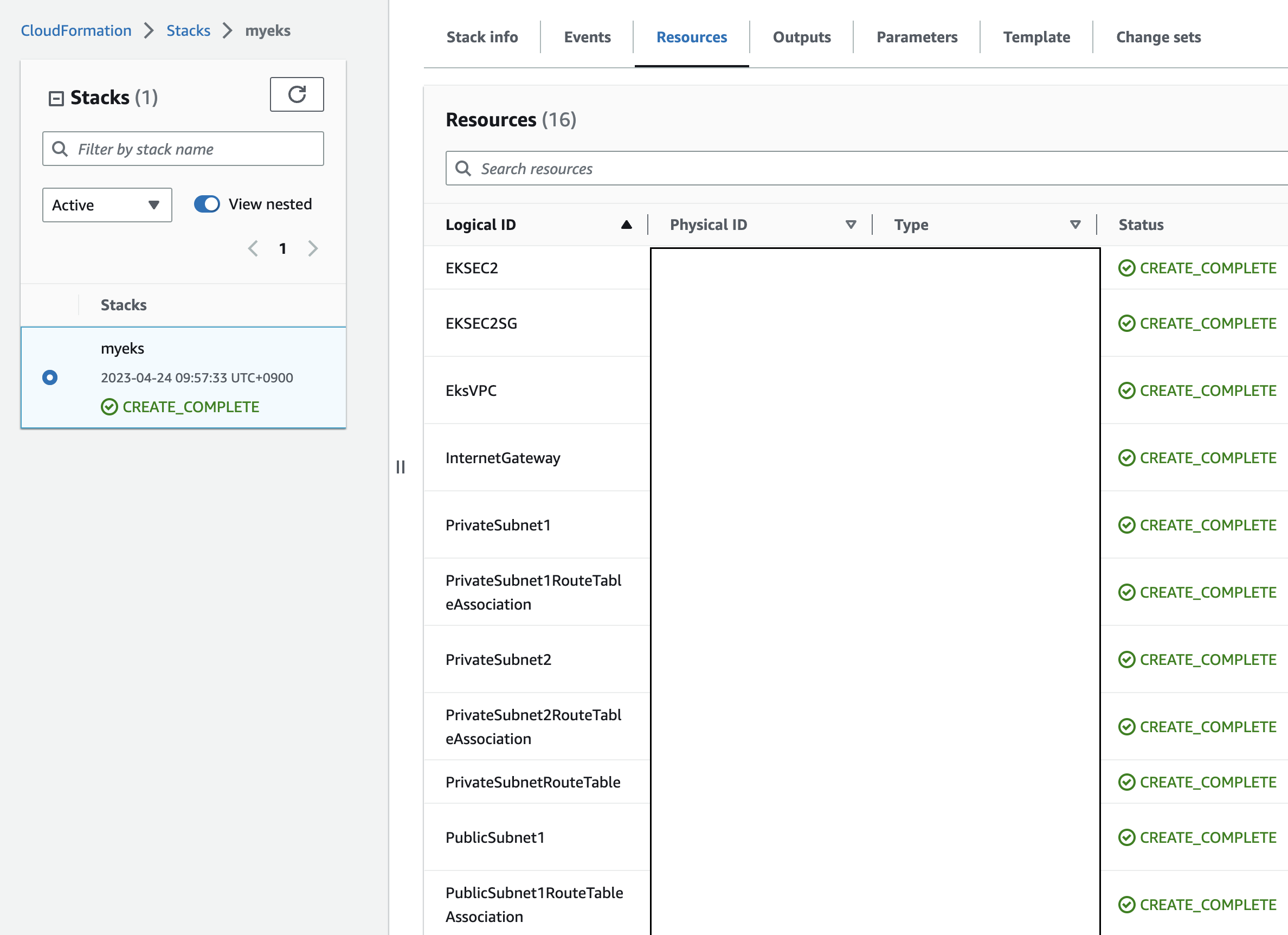 생성이 완료되었다면 이번에는 kubectl을 진행할 관리자 인스턴스를 생성해보자! Kubernetes를 공부할 때도 느낀 것이지만 공식홈페이지가 최고인듯 싶다 + 요즘에는 ChatGPT가 있기 때문에 적절하게 섞어서 사용하면 냐미다! 관리용 인스턴스는 CloudFormation을 이용하여 만들어보았다. 모든 리소스 생성시 region을 잘 확인하고 생성하자!