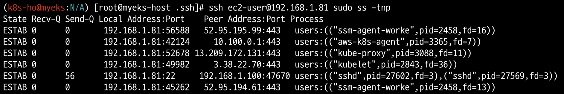 ssh ec2-user@$192.168.1.81 sudo ss -tnp