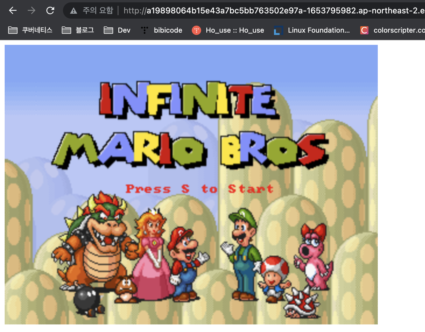 => AWS는 Docker Hub와 같은 public, private container repository도 제공해준다. 이건 그냥 한번 만들어보면 될 것 같다. 보안이나 개발 관점에서도 image 관리는 굉장히 중요한데 추후에 클라우드 업무를 하게된다면 자주 애용할 것만 같은 느낌이다^^. 스터디에서 알려준 슈퍼마리오게임 image를 repo에 등록하였고 위의 절차대로 진행시, 게임을 즐길 수 있게 되었다^^. 나처럼 Kubernetes Service LoadBalancer로 배포시, Pending 상태 이후 External-IP가 생기더라도 조금 기다려야하는 것으로 보여진다. 그동안 SecurityGroup관련 설정도 확인해서 필요시 추가해주면 될 것 같다