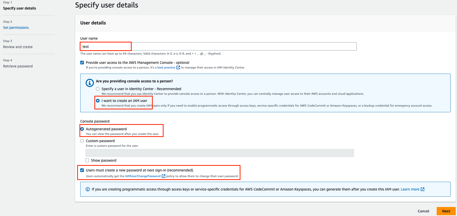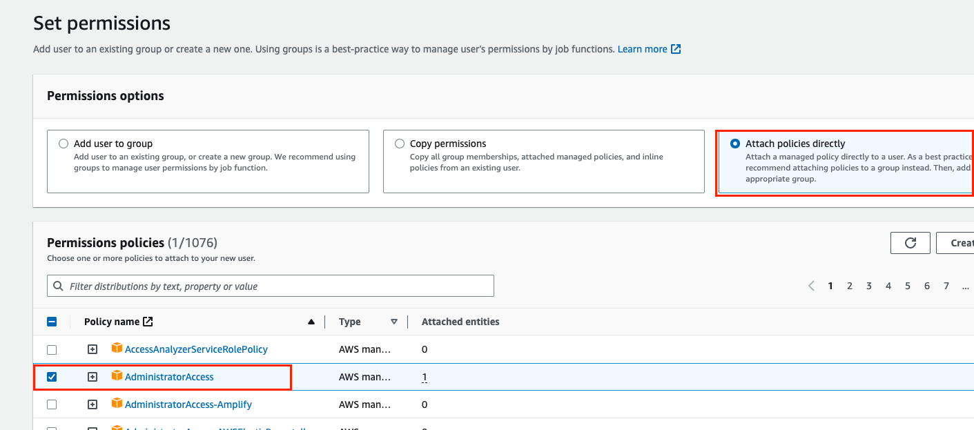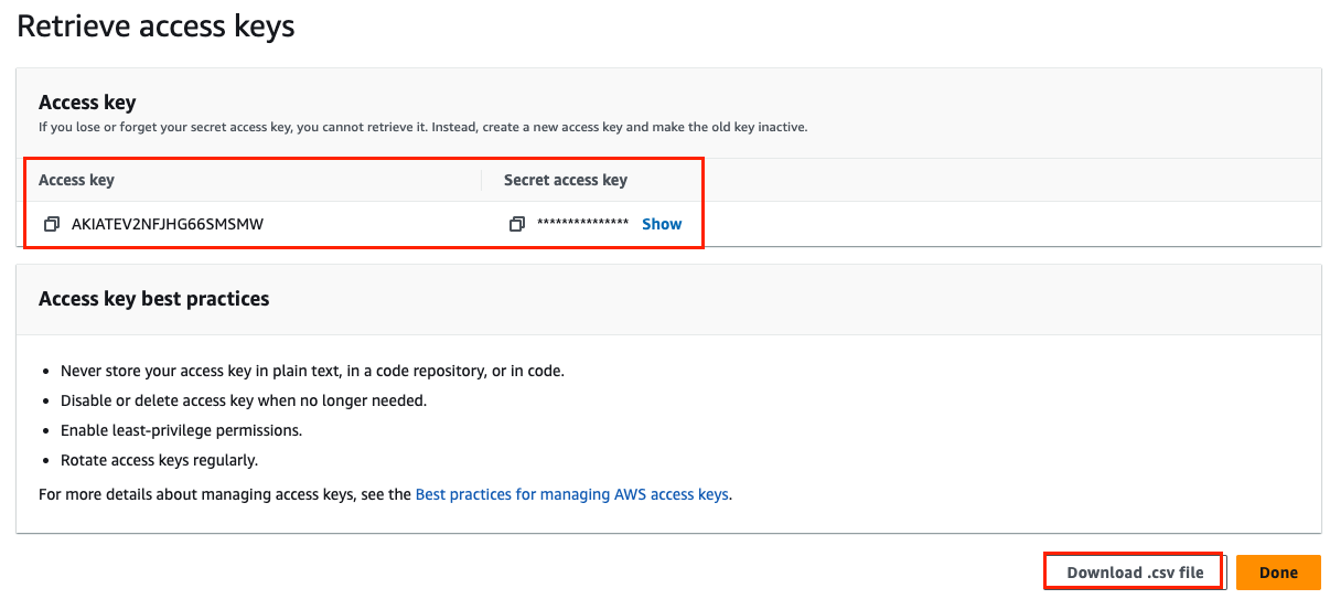 그림처럼 계정을 생성한 뒤, 권한을 설정(실습 편의상 Administrator Access 권한을 줬음)해주고 앞으로 사용할 Access Key도 생성해주자. 참고로 Secret Access Key는 생성 시에만 확인이 가능(까먹으면 재생성해야함)하므로 잘적어두거나 .csv file을 다운로드해서 별로로 잘보관해두자.