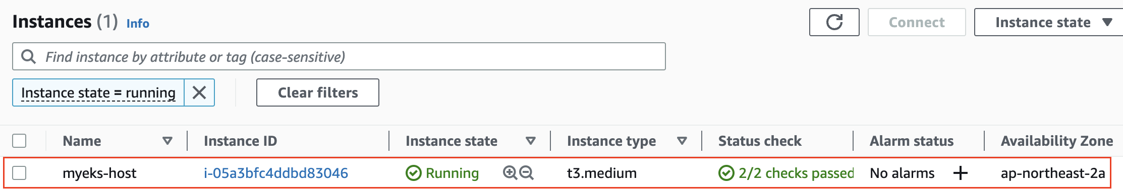 => 해당 명령어는 현재 실행중인 모든 인스턴스 정보를 보여준다(EKS 관련 인스턴스만 나오는 것은 아니므로 입맛에 맞게 필터링해서 사용하면 된다)
