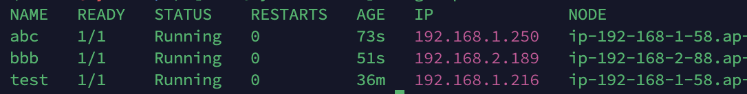 => Pod는 각각 network namespace를 격리하여 가지고 있으며 node에 연결되어있는 veth interface는 pod에 pair로 연결된다. 대충 요점만 말하자면 pod당 veth가 각각 존재한다는 것이다. 때문에 현재 test와 abc Pod는 192.168.1.58 node에 배포되어있으므로 해당 node의 veth 역시 2개가 생성된 것을 확인할 수 있었다. (네트워크 관련 부분은 2주차부터 진행한다고 하셨으니 일단 여기까지만 작성하였다)