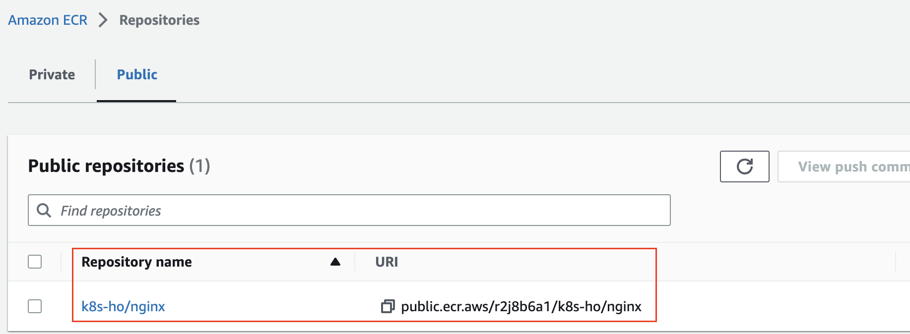 REPOURI=$(aws ecr-public describe-repositories --region us-east-1 | jq -r .repositories[].repositoryUri)