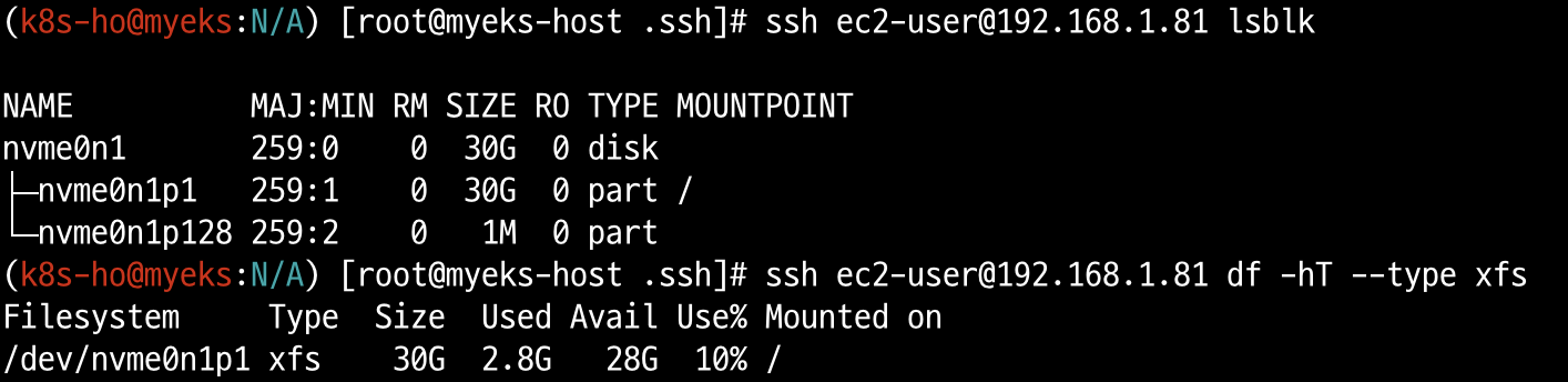 ssh ec2-user@192.168.1.81 df -hT --type xfs