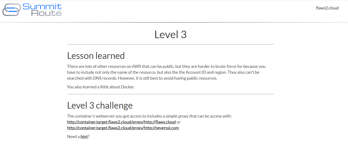 level3-oc6ou6dnkw8sszwvdrraxc5t5udrsw3s.flaws2.cloud
