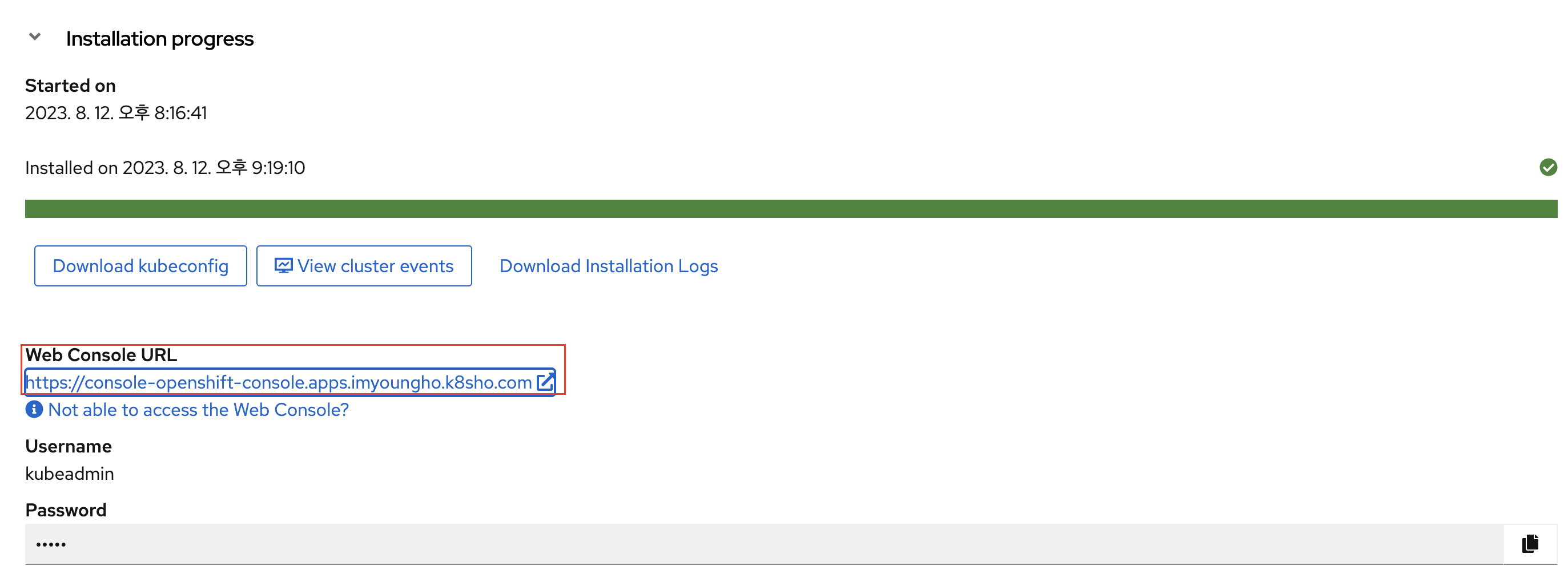 설치완료 & Web Console 접속