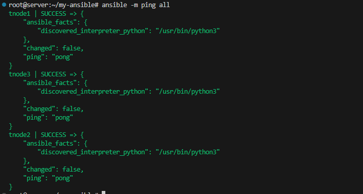 => 실패했던 "ansible -m ping web -u ubuntu" 명령이 정상적으로 성공한 것을 볼 수 있었다.